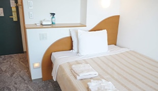 コンパクトなお部屋の作りですが、お二人でもゆったりとくつろげるダブルベッドをご用意。