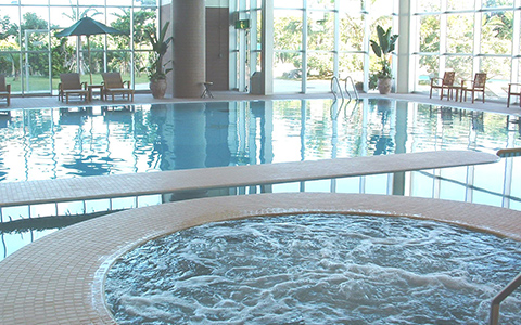 天気を気にせずスイミング!ウォータースライダーやジャグジーもあるので、お子様も楽しめます。