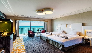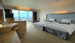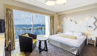 二面の大きな窓からは、パノラマビューの瑠璃色の海。静寂に包まれた、「60平米」の開放感のある空間は、ゆったりとした時の流れを感じることができます。<客室詳細>面積35㎡・ベッド×2台(122×203cm)(3台目はスタッキングベッドのご用意となります)・温水洗浄トイレ完備・Wi-Fi接続無料