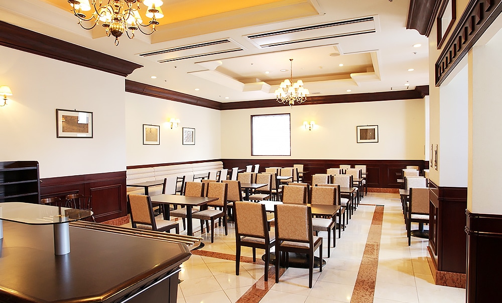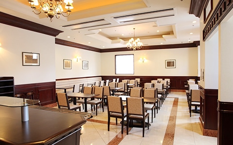 広々としたヨーロッパ調のデザインのレストラン。朝は沖縄の郷土料理をはじめとした朝食をお楽しみ頂けます。