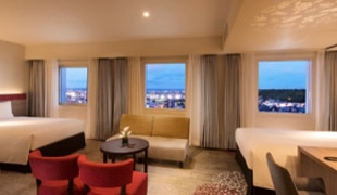 快適なベッドを備えた広々とした客室には、5名様までご宿泊いただけます。広々としたバスルームは大人数のご家族連れのお客様に最適です。
