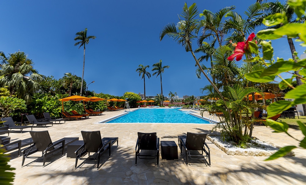 2019年夏にリニューアルオープンした、那覇市内最大級の屋外プール。椰子の木と豊かな緑や花に囲まれ、南国リゾート気分をご満喫いただけます。