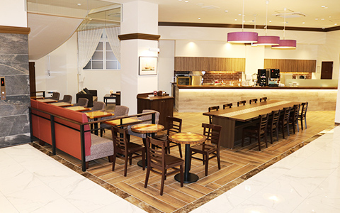 全69席の広々としたラウンジで、焼きたてパンとコーヒーで一息つきながらゆっくりとおくつろぎいただけます。