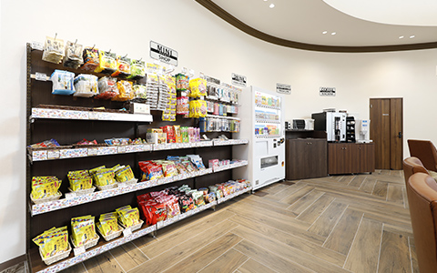 館内にはミニショップと自動販売機、コーヒーマシーンなどをご用意しております。※2Fにはソフトドリンクの自動販売機をご用意しております