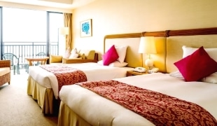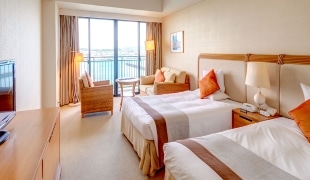 6~7階に位置するデラックスフロアルーム。ゆったりとくつろぎながらリゾートの空気を満喫することができます。華やかなファブリックと窓からの美しい眺望をお楽しみいただけます。