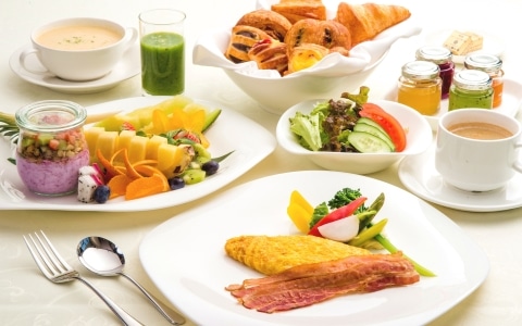 和食・洋食、そして沖縄料理まで揃えた豊富なメニューをご用意。エッグステーションでは、オムレツや目玉焼きなどお好みの玉子料理をシェフが目の前で焼き上げます。