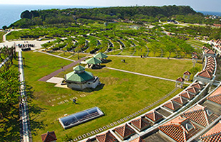 太平洋戦争の沖縄戦最後の激戦地であり、沖縄戦跡国定公園に指定されています。糸満市摩文仁の丘陵を南に望み、南東側にダイナミックで美しい海岸線を眺めることができます。