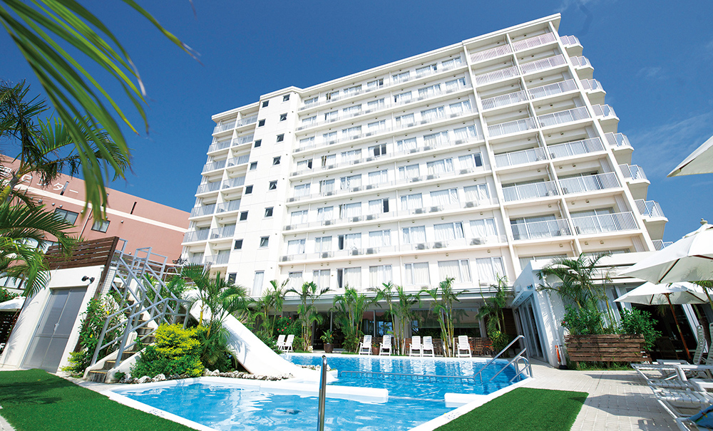 豊見城市(とみぐすくし)「豊崎タウン」は那覇市と隣接しており、那覇空港から車で約15分とアクセスも抜群。アウトレットモールや大型商業施設が立地し、ショッピングの環境も充実してきました。 当ホテルからはキレイな海の色、白い砂浜、那覇空港・滑走路の夜景や慶良間諸島に沈む最高の夕焼けが楽しめます。 「沖縄アウトレットモール あしびなー」(徒歩6分、約450m)や豊崎海浜公園(人工ビーチ、徒歩11分、約850m)などショッピングや海水浴などが近くにあります。