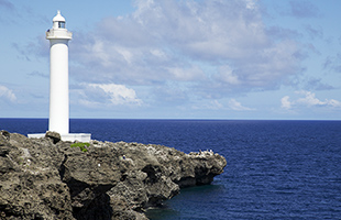 残波岬は高さ30m前後の断 崖が約2kmにも連なり、雄大な景観となっており、県内でも有数な景勝地で、岬の北側のエリアは海岸国定公園に指定されています。