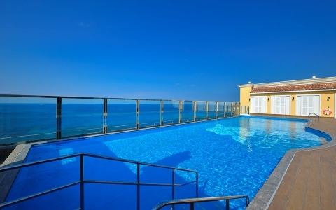 沖縄でもっとも流行が生まれる場所として注目を集めるアメリカンビレッジに隣接する「ベッセルホテルカンパーナ沖縄」。サンセットビーチまでは歩いて1分。大海原に沈む朝日や夕日と共にゆったりと時をお過ごしいただけます。別館の最上階12階には、宿泊者限定の屋上プール。絶景のサンセットを楽しむオーシャンビュープールからの東シナ海に面した眺望は抜群。高層階からの海の景色を見ながら、特別な時間をお過ごしいただけます。サウナを設けた大浴場も完備。絶景を眺める展望浴場開放感あふれる展望浴場が、旅の疲れを癒します。ゆったりとお湯につかりながら朝日に輝く青い海、黄金色に輝く沈む夕陽をご家族でお楽しみください。
