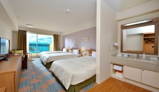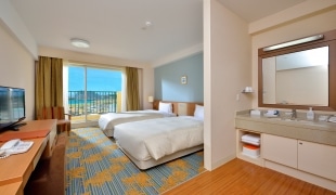 大人3名までご一緒にお過ごしいただける広々とした客室。バルコニーからの心地よい風を感じながら、リゾート気分をご満喫いただけます。