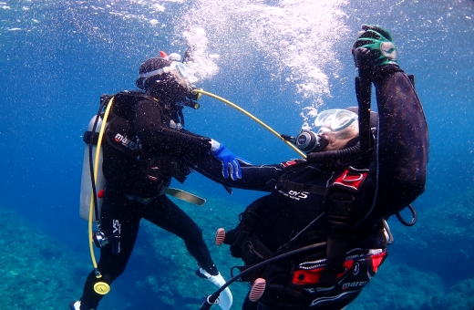 本格的なダイバーの第一歩となるのがこのコース。スクーバダイビングにかかわる知識はもちろん、海の知識や器材の知識など、安全なスクーバダイビングを楽しむための基礎知識と実践技術を身につけます。コース終了後にはCカード(ダイビングライセンス)が発行されます。 -