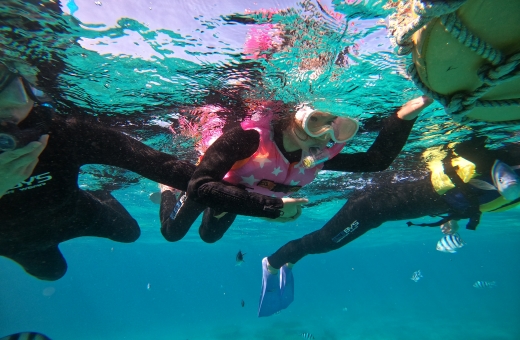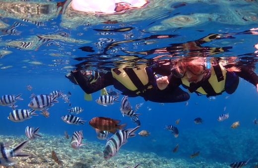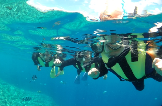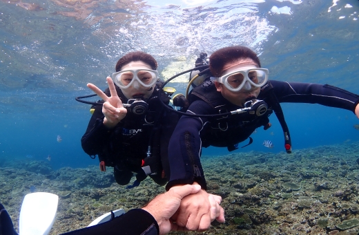 ダイビングポイントまでボートで移動するので、重い機材を背負って歩く必要はありません!インストラクターが丁寧に講習し、水中遊泳の時は手を繋いで泳ぎますので初めての方でも安心してご参加いただけます。 -